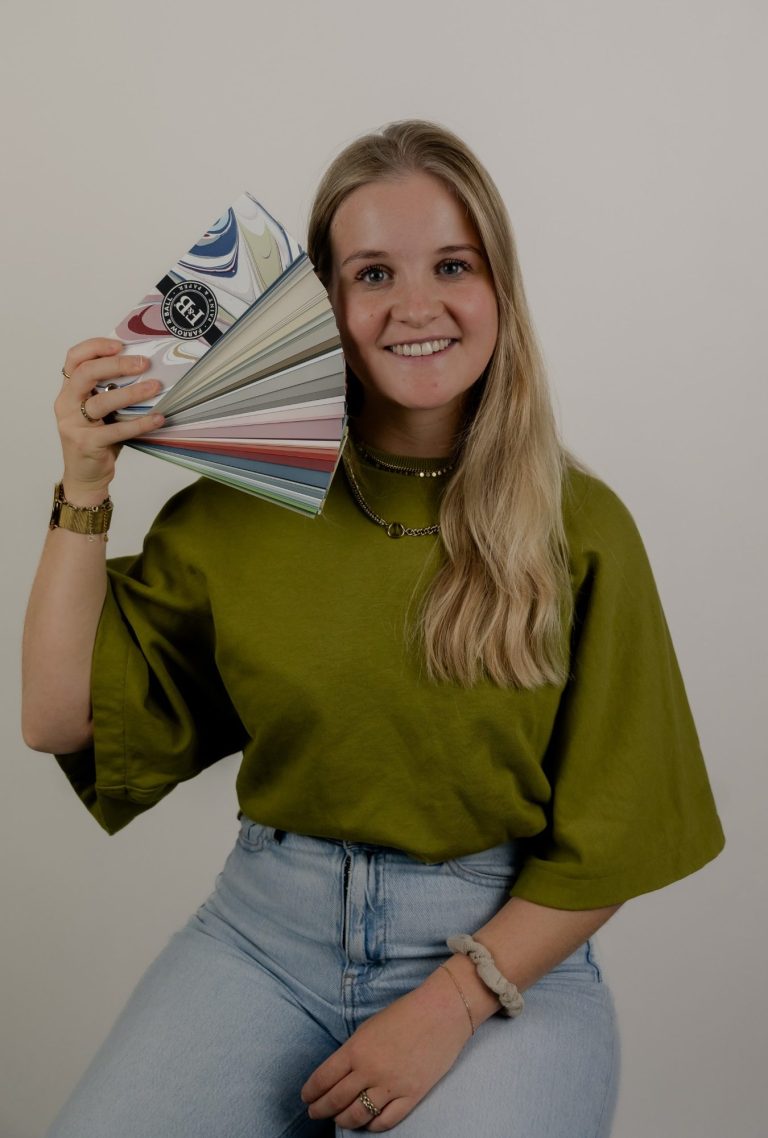Achteraf ontvang je een persoonlijke stalenbox thuis, gevuld met de beschikbare kleuren- en materiaalstalen voor de look & feel.